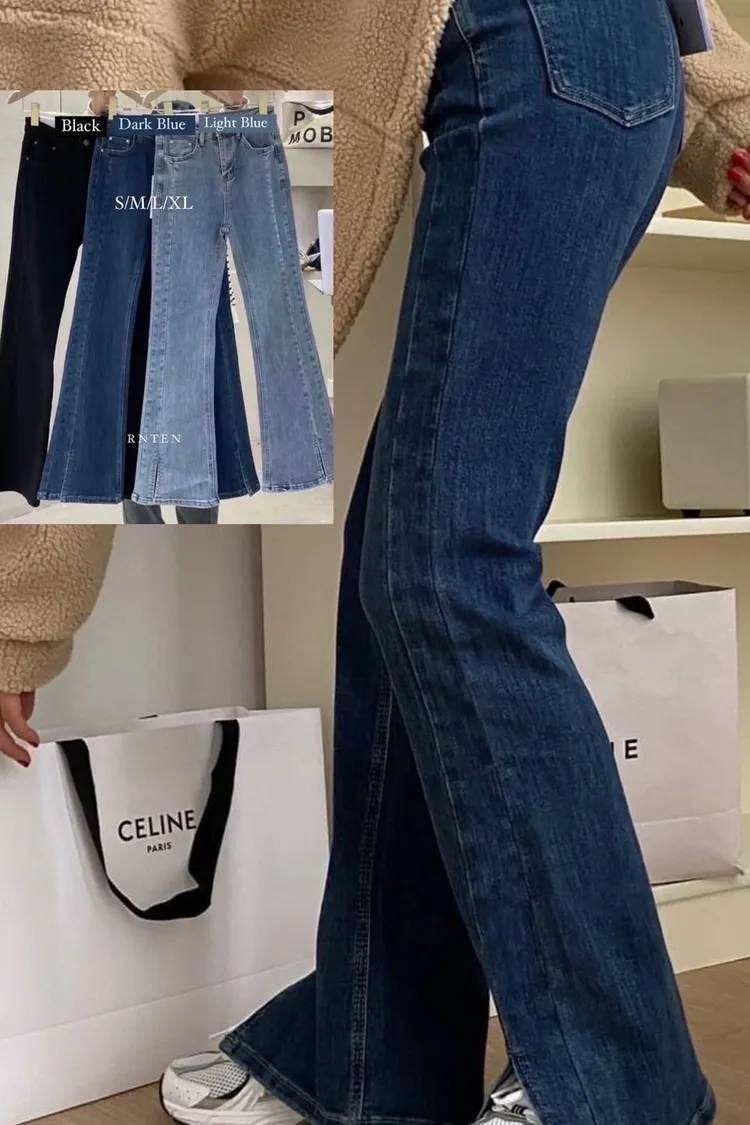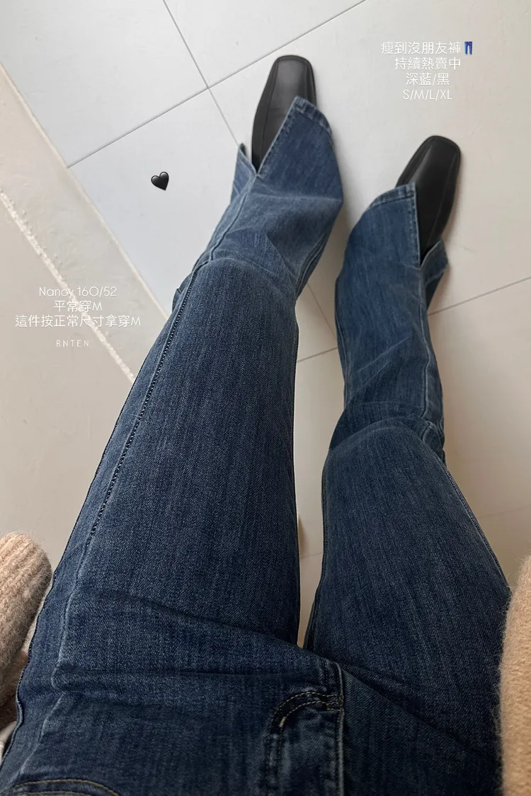 瘦到沒朋友牛仔褲👖 持續熱賣中!!! 2色-深藍、黑 尺寸-S、M、L、XL Nancy 160/52 平常穿M 這件也是按正常尺寸拿穿M✔️ 布料有彈性 褲腳開岔 微喇叭版型超騙🤣🤣🤣🤣 S腰圍29 臀圍40 褲長102 M腰圍31 臀圍42 褲長102 L腰圍33臀圍44褲長102 XL 腰圍35 臀圍46 褲長103