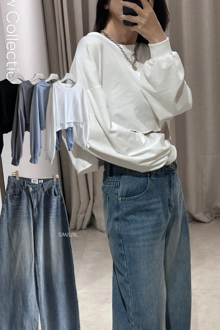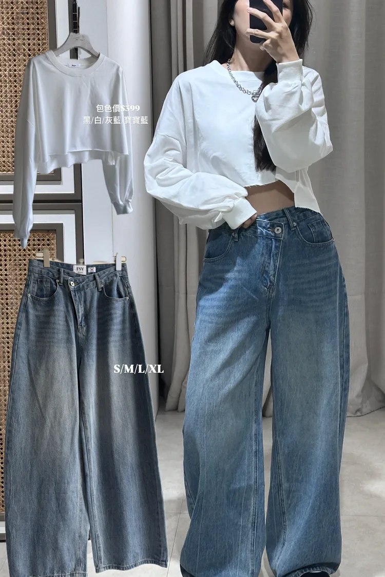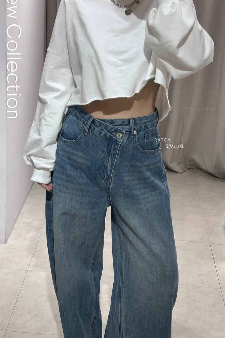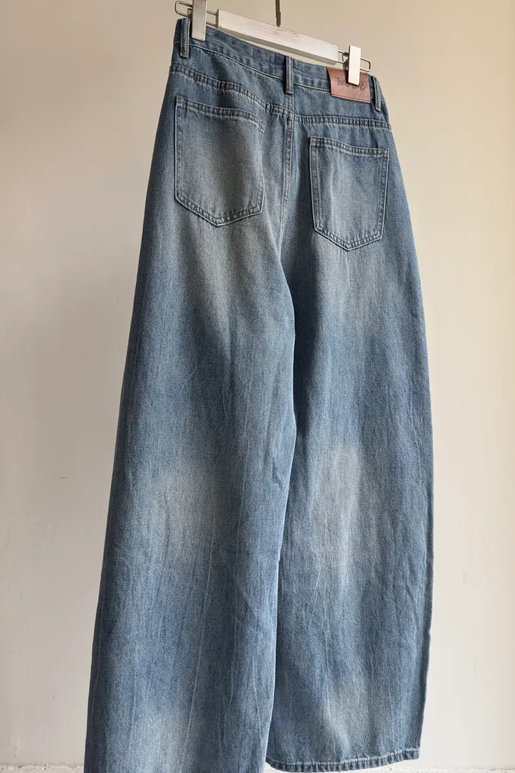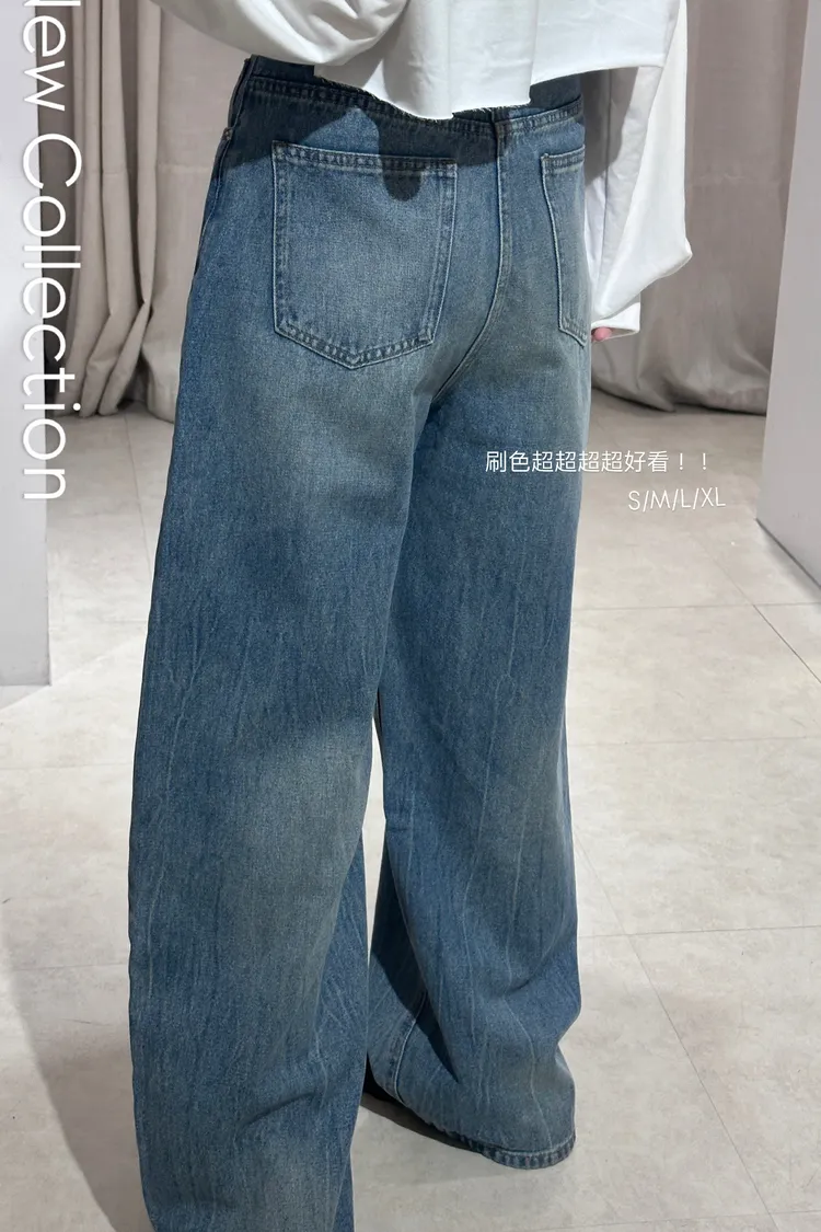 🇰🇷復古水洗刷色牛仔寬褲 JN912