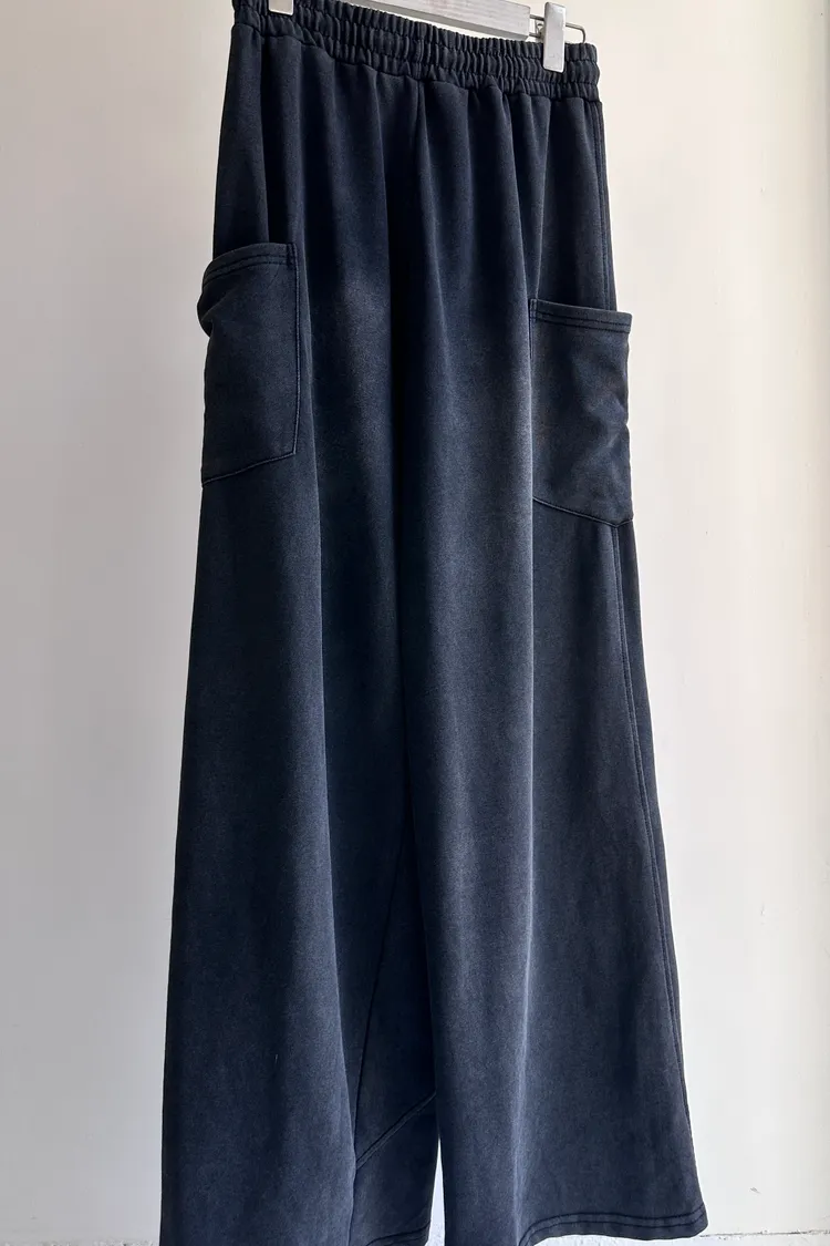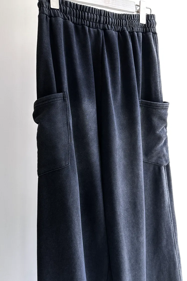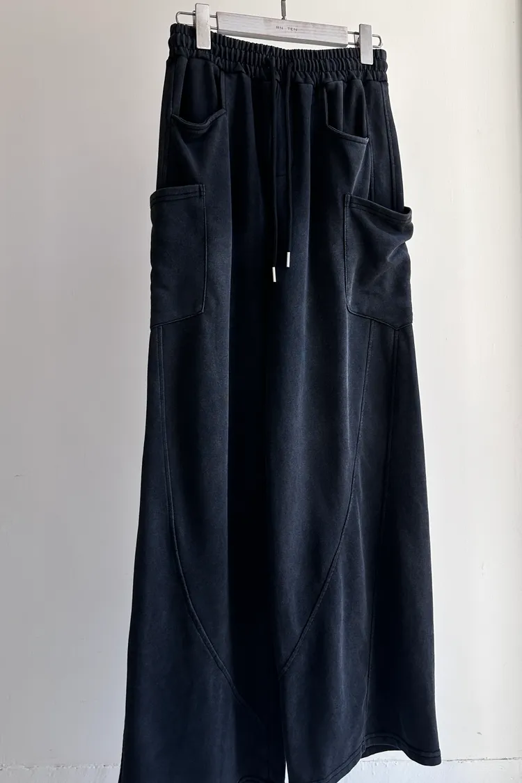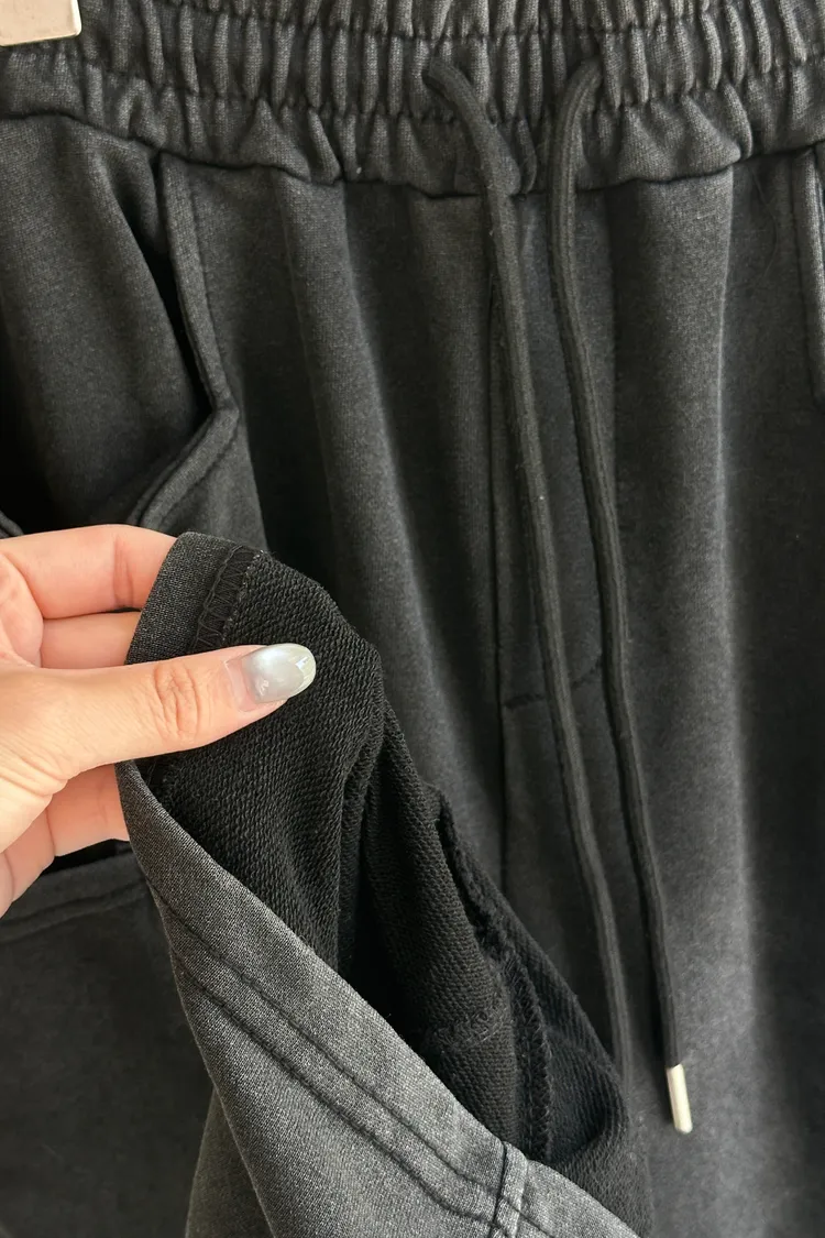 個性黑灰抽繩寬褲 TR272