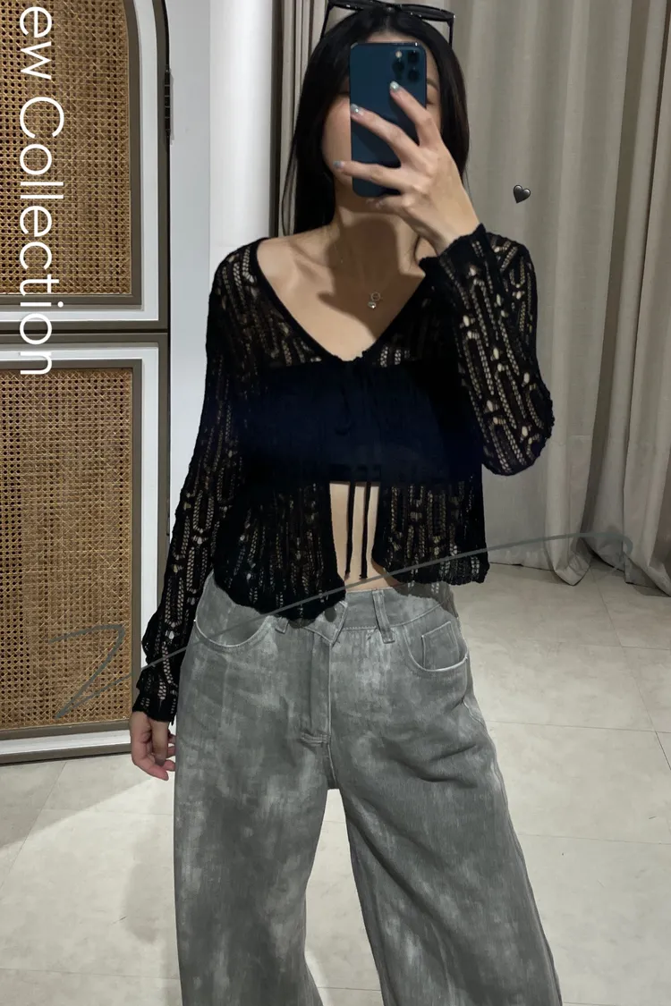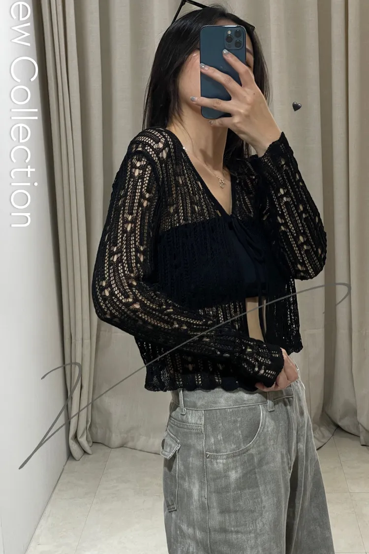 微辣款簍空綁結針織衫 TW009