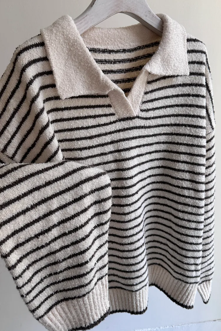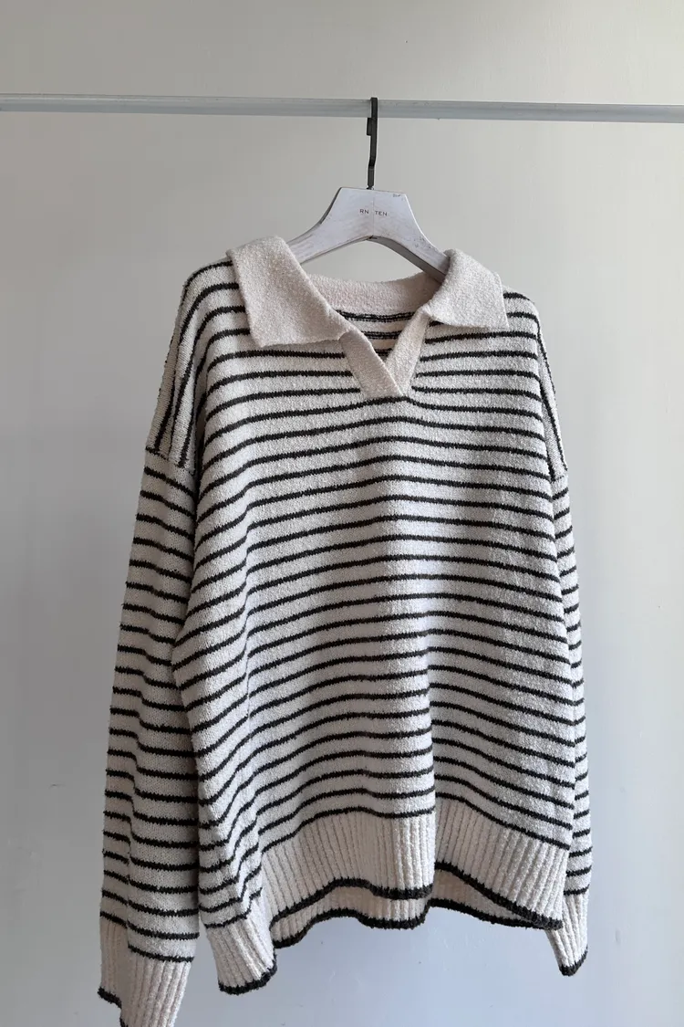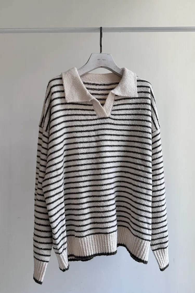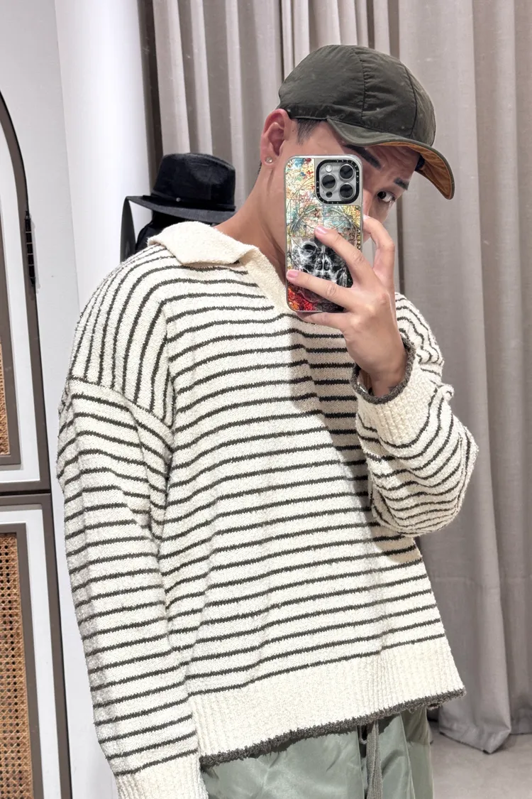 🇰🇷翻領條紋寬鬆針織衫 TW201