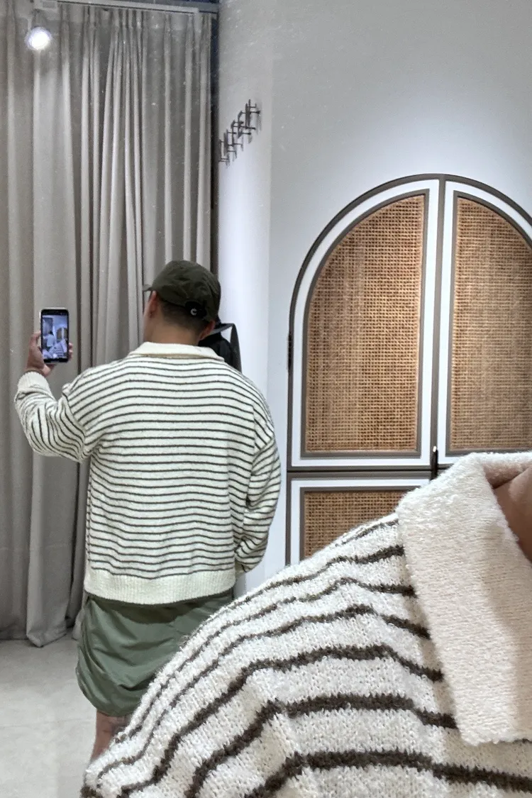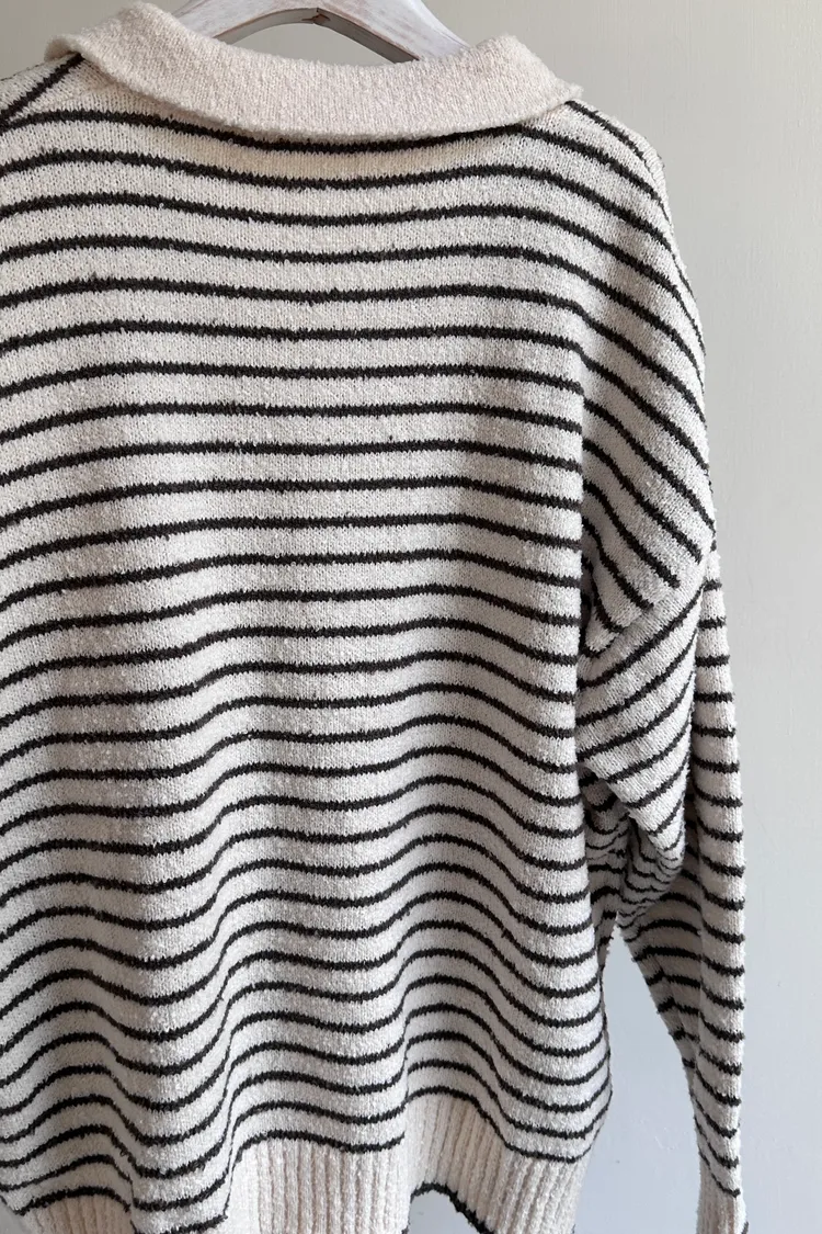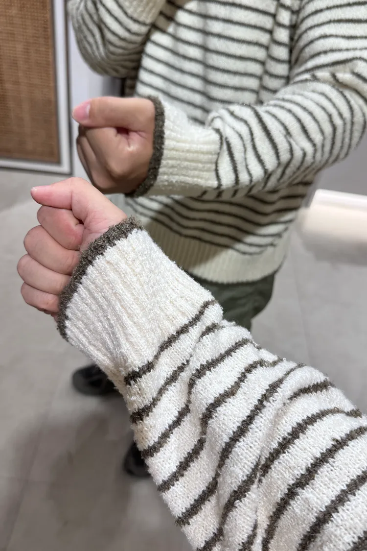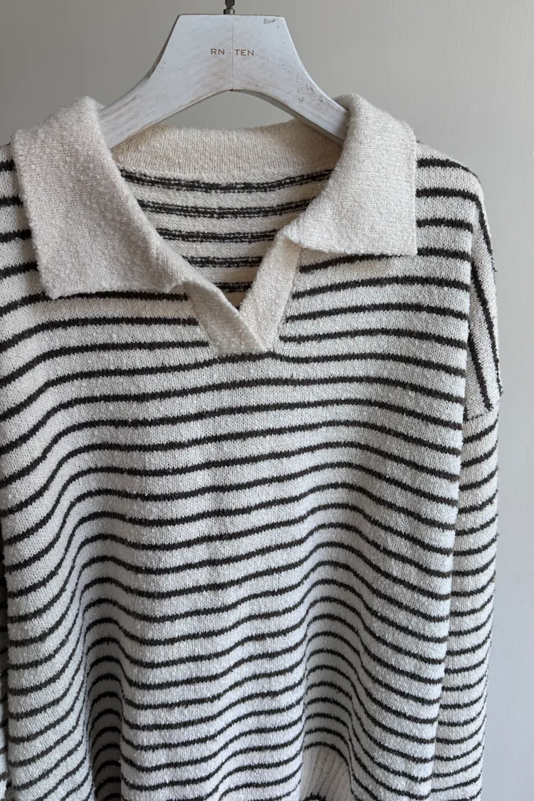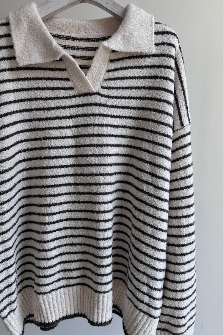 🇰🇷翻領條紋寬鬆針織衫 TW201