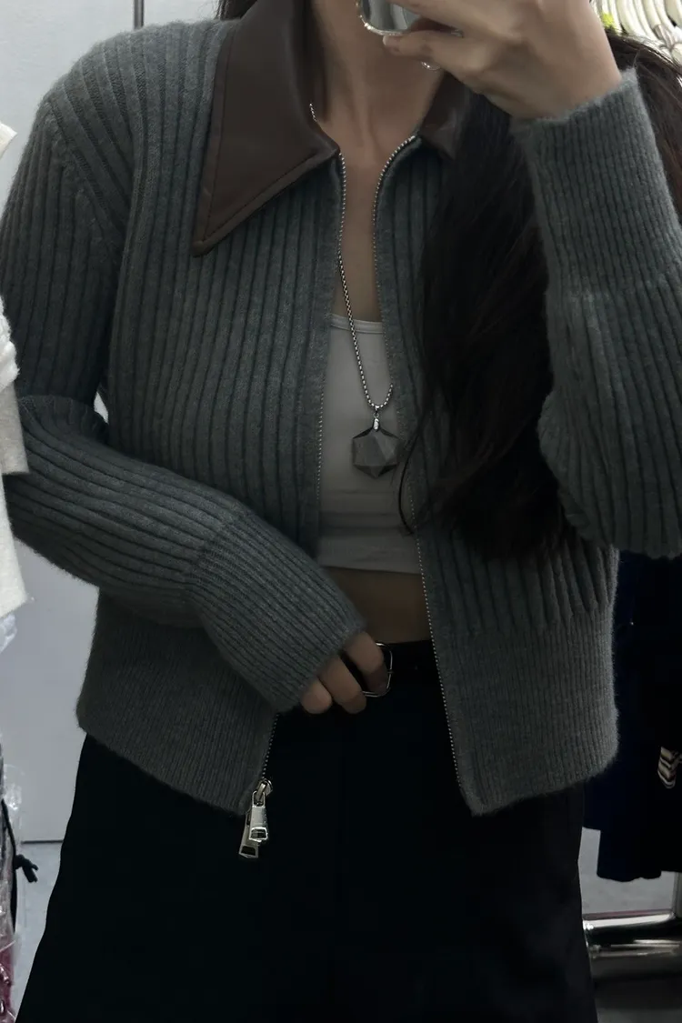 皮領拼接兩穿針織TWBK212